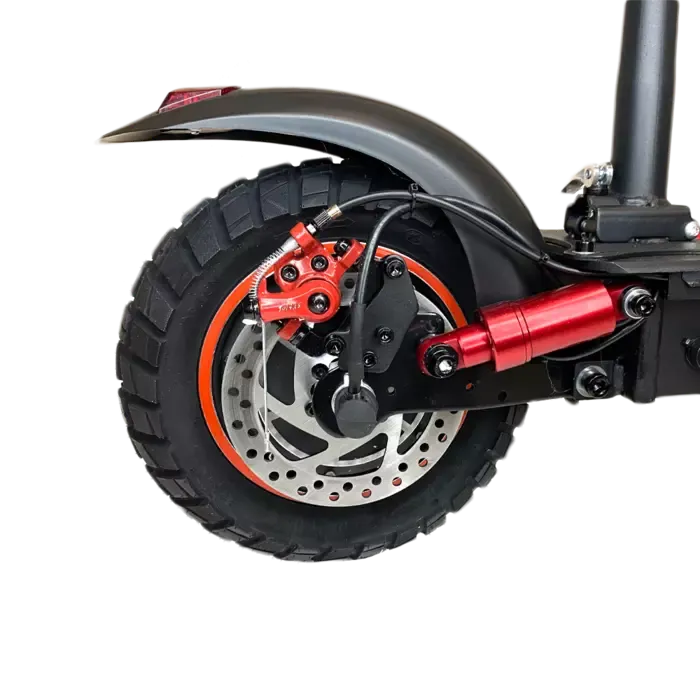 Designed for comfort, the MAX SPEED model features dual suspension and an optional seat, ensuring a smooth ride even on uneven roads. Its 10-inch wheels offer stability, while front and rear disc brakes provide strong and reliable stopping power for safer riding.