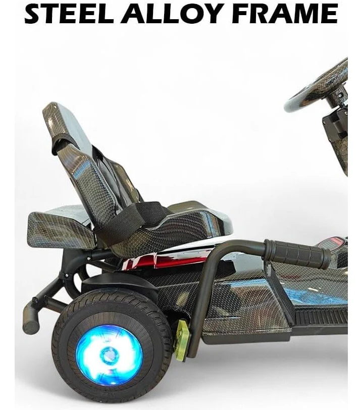 Designed specifically for drifting, this gokart features a hand brake system and a responsive steering wheel, enabling smooth turns, spins, and controlled slides. The wide 8-inch tires and stable low-profile design provide excellent balance, while the strong steel alloy frame ensures durability and long-lasting performance.